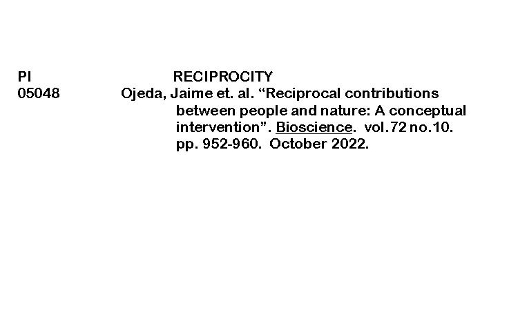 PERIODICAL INDEXING ByRenalyn Aguayon October 10, 2025January 29, 2026 Reciprocal contributions between people and natureDownload