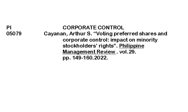PERIODICAL INDEXING ByRenalyn Aguayon November 21, 2025January 30, 2026 Voting preferred shares and corporate controlDownload
