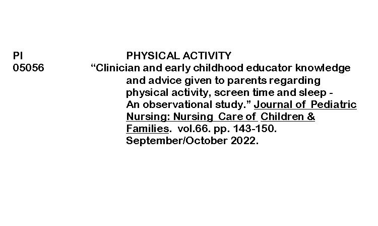 PERIODICAL INDEXING ( Clinician and early childhood educator knowledge and advice given to parents regarding physical activity, screen time and sleep – An observation study) ByRenalyn Aguayon February 20, 2026 Clinician and early childhood educator knowledgeDownload