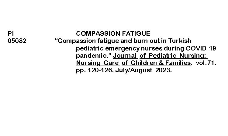 PERIODICAL INDEXING (JOURNAL OF PEDIATRIC NURSING) ByRenalyn Aguayon January 28, 2026January 29, 2026 Compassion fatigue and burnout in turkishDownload