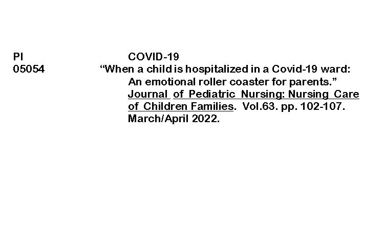 PERIODICAL INDEXING (JOURNAL OF PEDIATRIC NURSING) ByRenalyn Aguayon February 5, 2026February 6, 2026 When a child is hospitalized in a covid 19 wardDownload