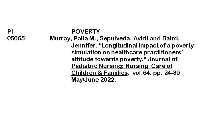 PERIODICAL INDEXING (JOURNAL OF PEDIATRIC NURSING) ByRenalyn Aguayon February 10, 2026February 12, 2026 longitudinal impact of a poverty simulation on healthcareDownload