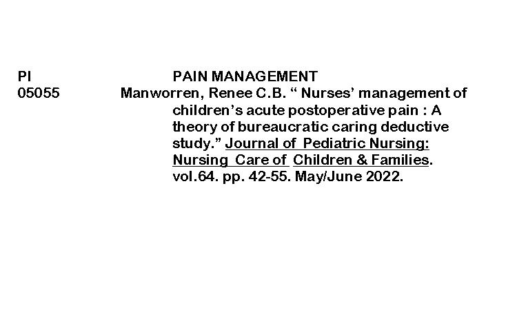 PERIODICAL INDEXING (JOURNAL OF PEDIATRIC NURSING) ByRenalyn Aguayon February 12, 2026February 13, 2026 Nurses management of childrens acute postoperative painDownload