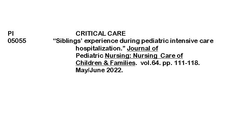 PERIODICAL INDEXING (JOURNAL OF PEDIATRIC NURSING) ByRenalyn Aguayon February 12, 2026February 13, 2026 siblings’ experience during pediatric intensive care hospitalizationDownload