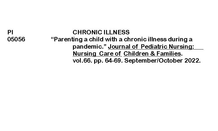 PERIODICAL INDEXING (JOURNAL OF PEDIATRIC NURSING) ByRenalyn Aguayon February 13, 2026February 16, 2026 Parenting a child with a chronic illness during a pandemicDownload