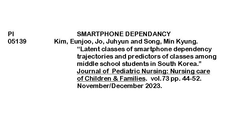 PERIODICAL INDEXING (JOURNAL OF PEDIATRIC NURSING) ByRenalyn Aguayon January 8, 2026January 30, 2026 latent classes of smartphone dependencyDownload