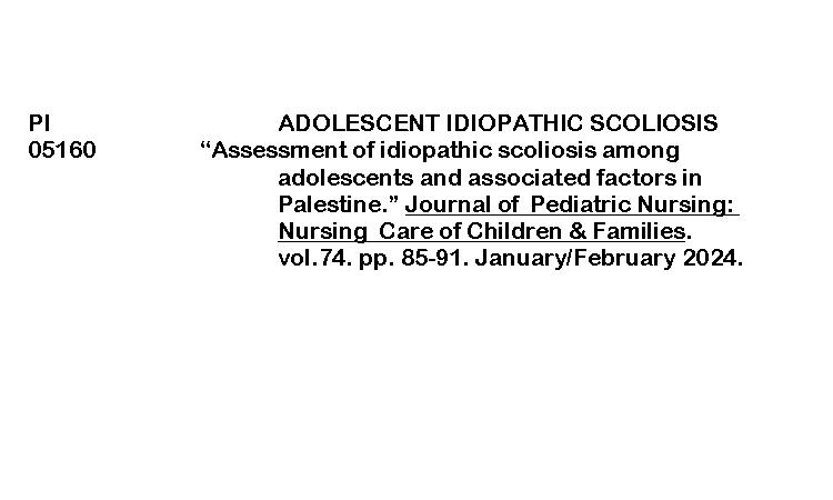 PERIODICAL INDEXING ( JOURNAL OF PEDIATRIC NURSING) ByRenalyn Aguayon January 20, 2026January 30, 2026 Assestment of idiopathic scoliosis among adolescentsDownload