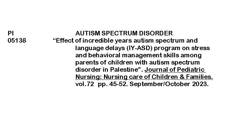 PERIODICAL INDEXING (JOURNAL OF PEDIATRIC NURSING) ByRenalyn Aguayon January 6, 2026January 30, 2026 effect of incredible years autism spectrumDownload