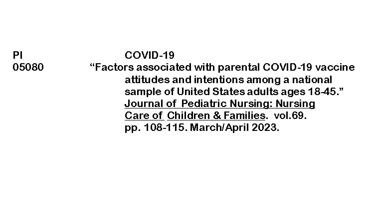PERIODICAL INDEXING (JOURNAL OF PEDIATRIC NURSING) ByRenalyn Aguayon January 21, 2026January 30, 2026 Factors associated with parental Covid 19Download