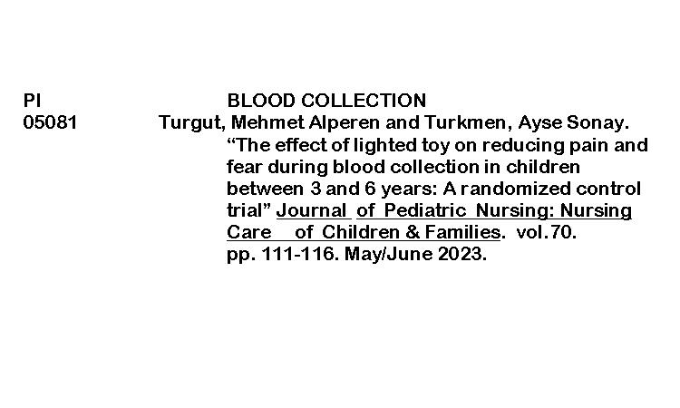 PERIODICAL INDEXING (JOURNAL OF PEDIATRIC NURSING) ByRenalyn Aguayon January 26, 2026January 29, 2026 The effect of lighted toy on reducing pain and fearDownload
