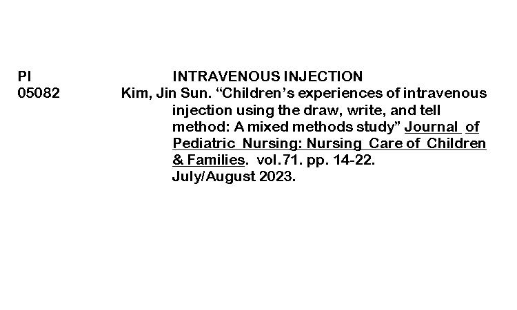 PERIODICAL INDEXING (JOURNAL OF PEDIATRIC NURSING) ByRenalyn Aguayon January 27, 2026January 29, 2026 Children’s experiences of intravenous injection using the drawDownload
