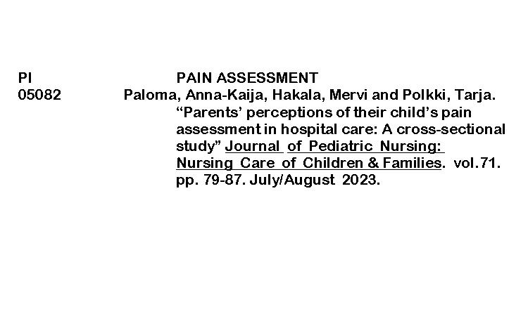 PERIODICAL INDEXING (JOURNAL OF PEDIATRIC NURSING) ByRenalyn Aguayon January 28, 2026January 29, 2026 parents perception of their childs pain assessment in hospitalDownload