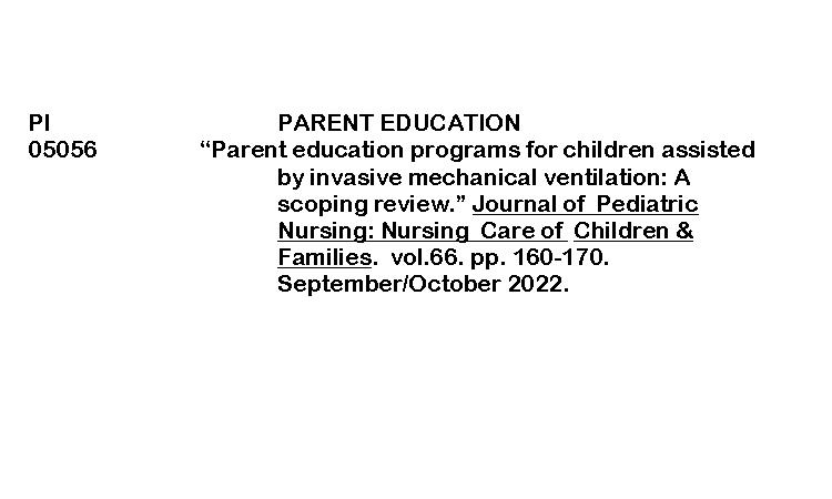 PERIODICAL INDEXING ( Parent education programs for children assisted by invasive mechanical ventilation : A scoping review) ByRenalyn Aguayon February 20, 2026 Parent education program for childrenDownload