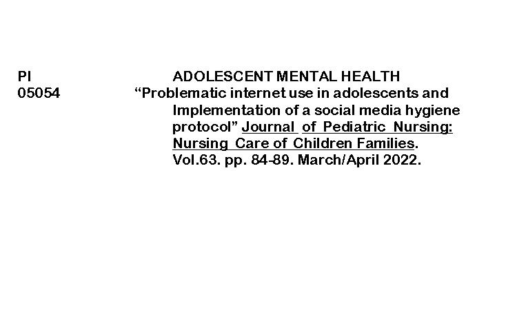 PERIODICAL INDEXING(JOURNAL OF PEDIATRIC NURSING) ByRenalyn Aguayon February 5, 2026February 6, 2026 Problematic internet use in adolescents and implementationDownload